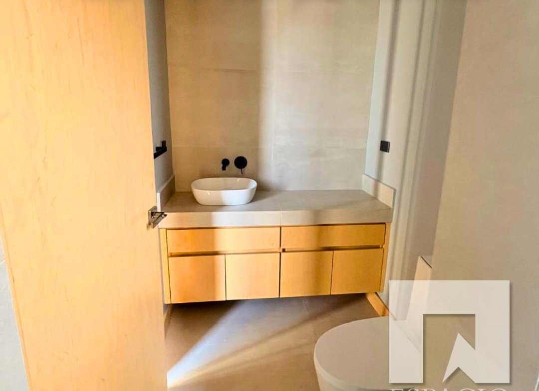 • Área de servicio con mueble de madera, tarja de acero inoxidable y cubierta de cuarzo.